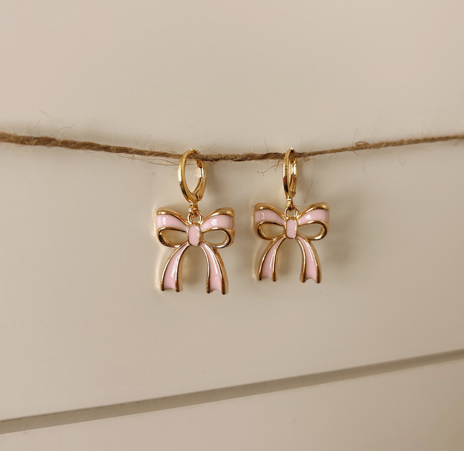 18k gold plated earring hoop, with enamel bow charm. ♡